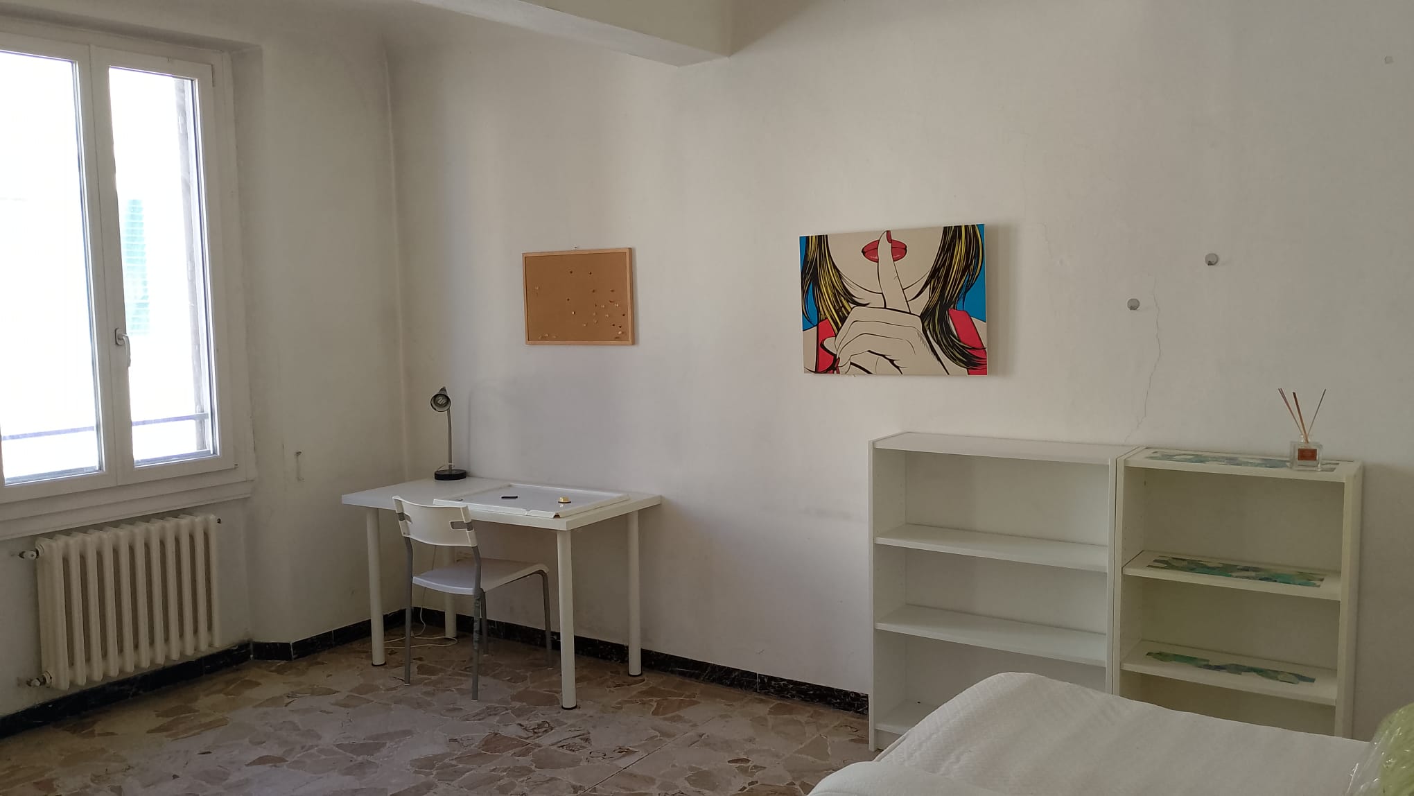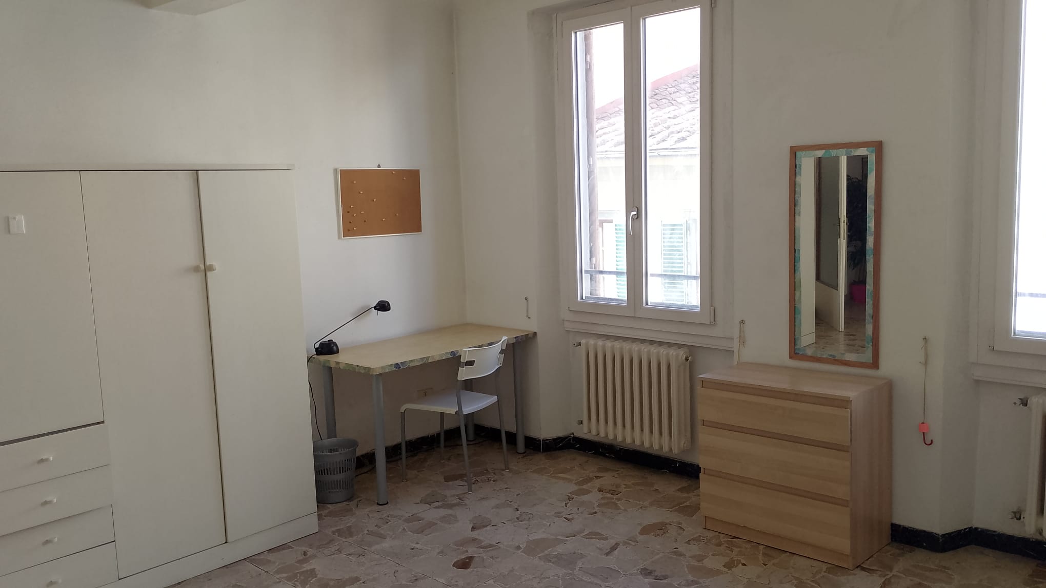 L’appartamento è composto da: ingresso, salone, cucina, una camera doppia, due spaziose camere singole, bagno e ripostiglio.