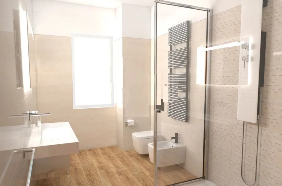 L’appartamento è composto da: ingresso, salone, cucinotto, tre camere ( di cui una in mansarda ), doppi servizi sottotetto, balcone e possibilità di realizzare una terrazza a tasca di circa 10 mq.